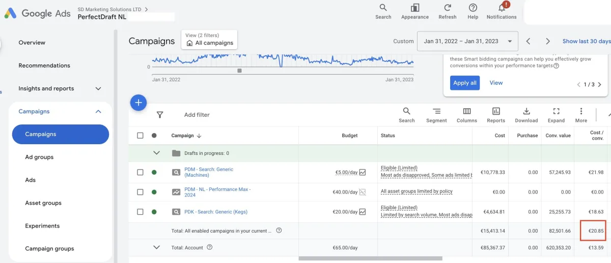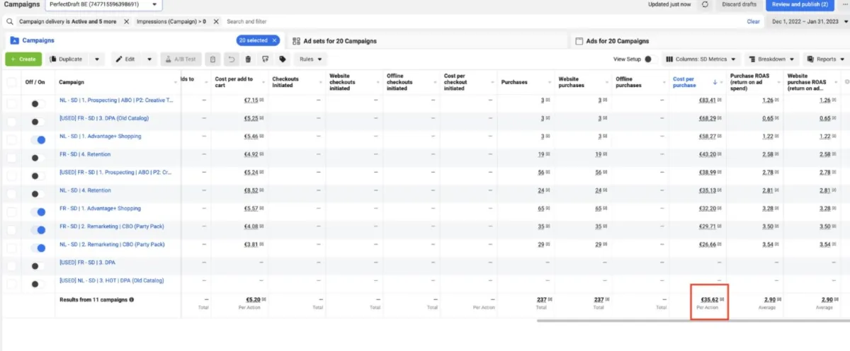 We achieved PerfectDraft’s goal by increasing brand awareness in Belgium and reducing CAC by 70%. This success story shows that with testing and deep analysis, paid media efforts can drive strong, measurable results for any brand with a great product.